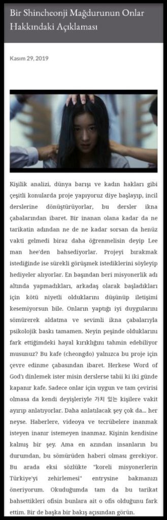Konu başlığına bakınca Shincheonji’den zarar gören birinin açıklama yapması ama yazan içerik alakasız.