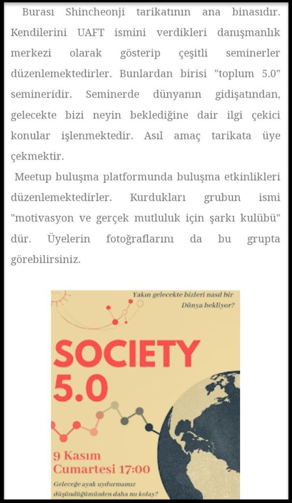 Yazılan bütün bu yazı, kişinin kendisini merkez alarak yazılmış ve kendisinin takıp baktığı at gözlükleri çerçevesinde Shincheonji’nin bütün işlerini inceleyip bir çizgi belirlemiştir. Bizler Toplum 5.0 aracılığıyla değişen toplumun içinde, insanın onuru ve insanın değeri medeniyet toplumlarını oluşturdu. Böyle bir değeri biz de Tanrı’nın sonsuz yaşamı, düşünme gücü ve yaratma gücüyle bağlantılarsak bu durum insanoğlunun toplum içinde nasıl bir etki göstermekte olduğunu net bir şekilde anlatmıştık. Yanlış öğrettiğimiz bir şey varsa eğer o zamanda dinleyip bir karara varılması gerekirdi.